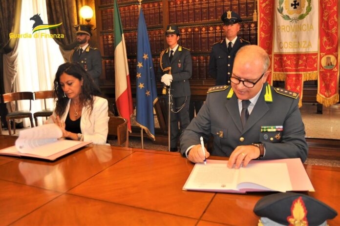 È stato siglato questa mattina il protocollo d’intesa tra la Provincia di Cosenza e la Guardia di Finanza, accordo che ha l’obiettivo di potenziare il presidio assicurato dalle Fiamme gialle, impegnate a tutelare la corretta attuazione del Piano nazionale di ripresa e resilienza (Pnrr), e migliorare l’efficacia complessiva delle misure volte a prevenire, ricercare e contrastare le violazioni in danno degli interessi economico-finanziari dell’Unione europea, dello Stato, delle regioni e degli enti locali, connessi alle misure di sostegno e finanziamento del piano di ripresa.